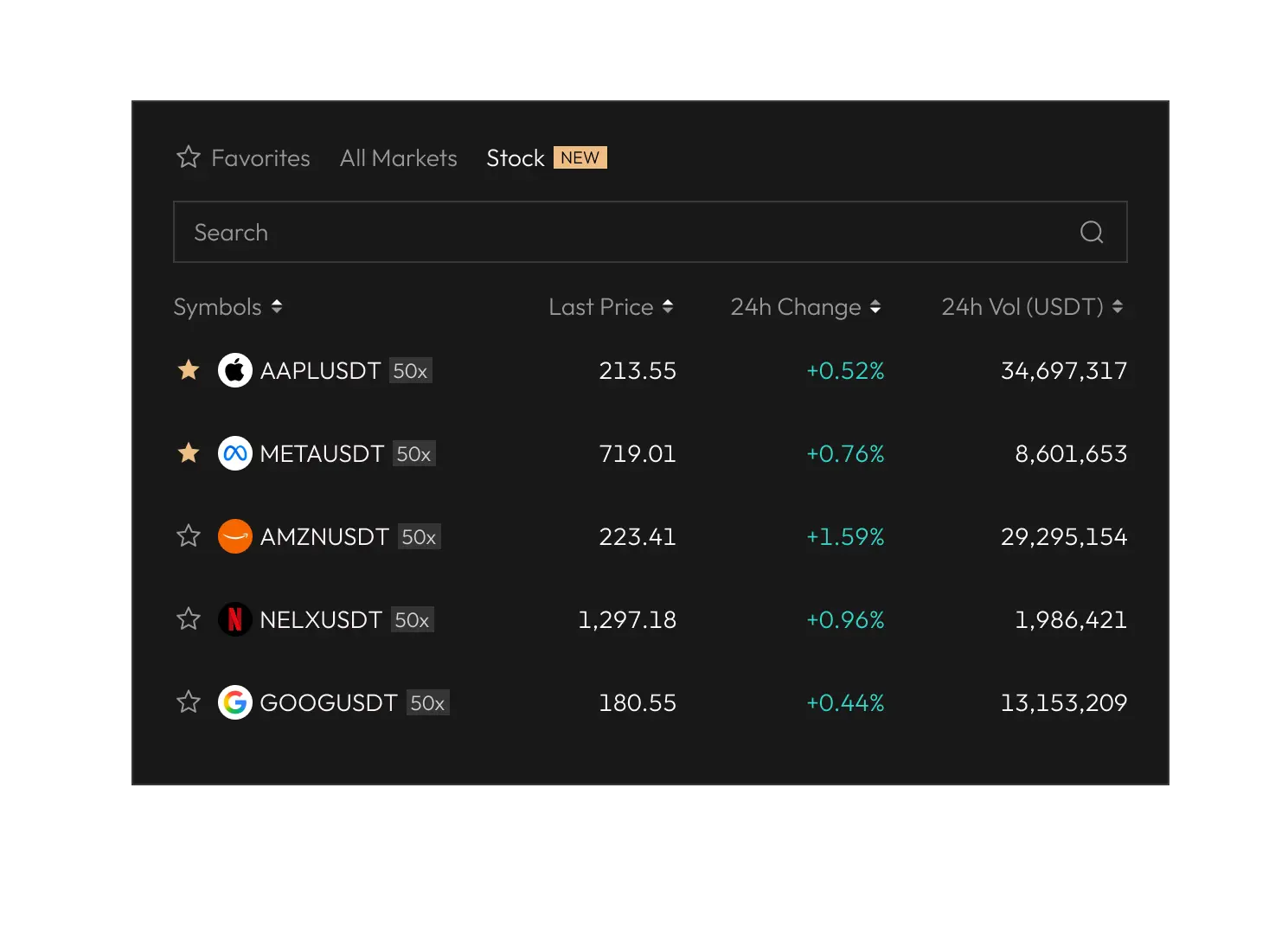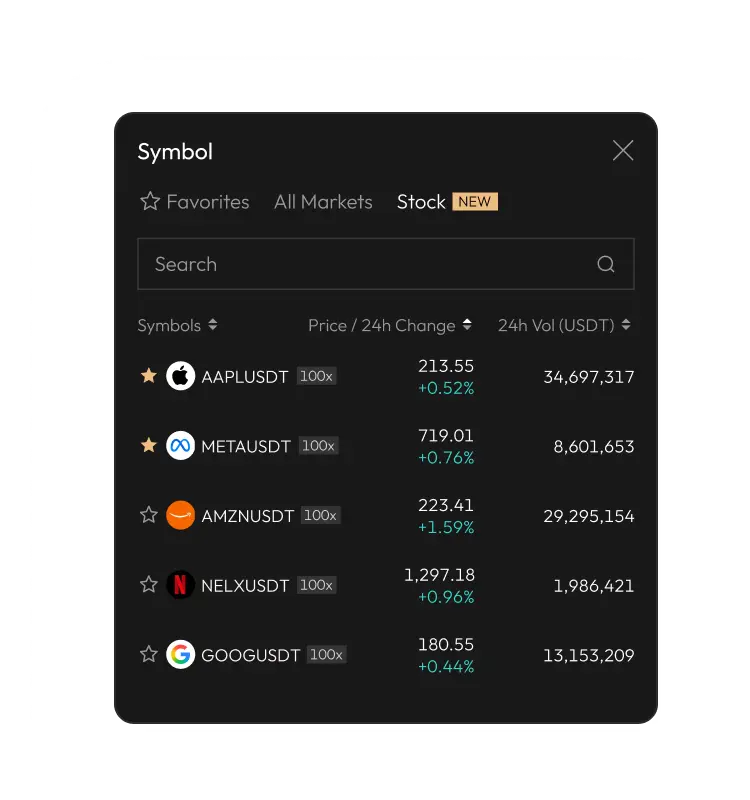 Trade U.S. stock with up to 100x leverage. Fully settled in crypto,